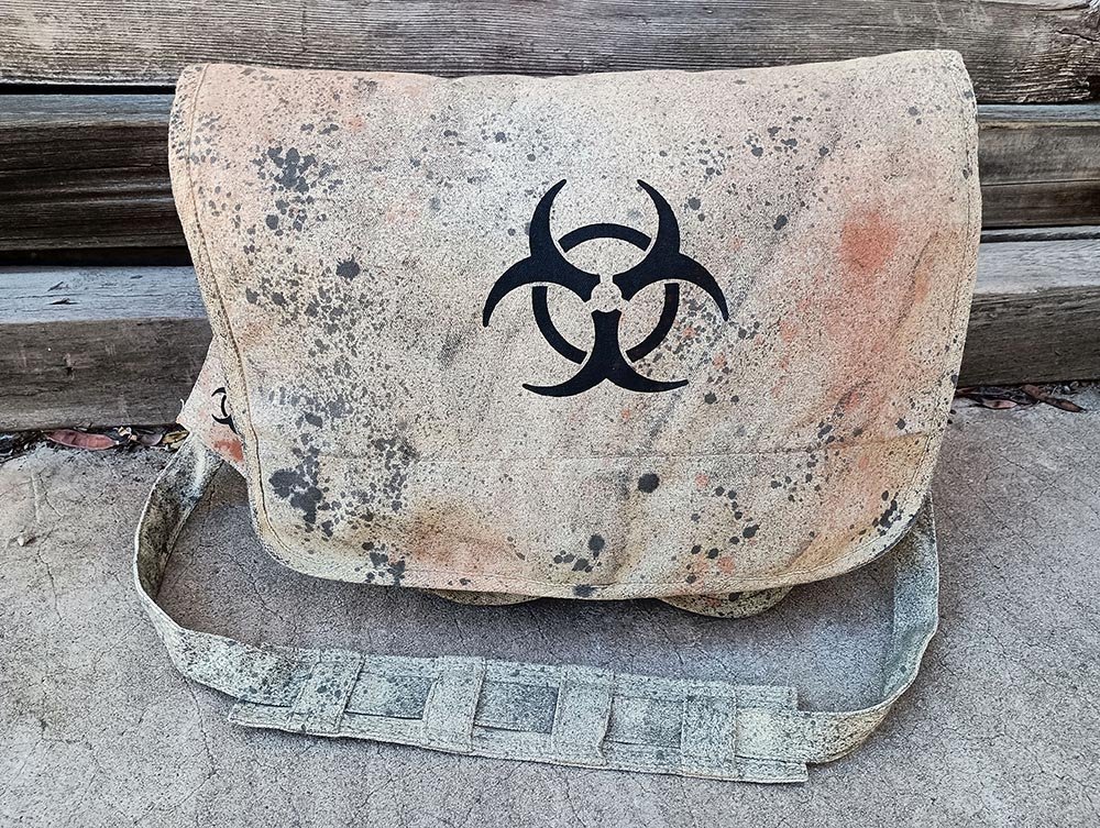 This biohazard messenger cross-body bag is made from lightweight khaki cotton canvas and is perfect for a day out fighting zombies.
